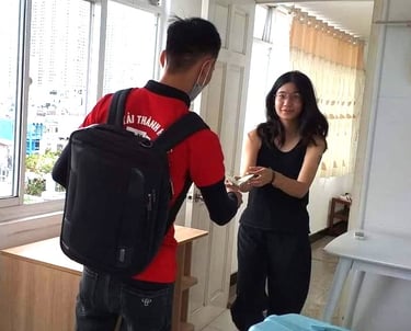 Nhân viên bàn giao và thu tiền khách hàng sau khi hoàn thành dịch vụ vận chuyển