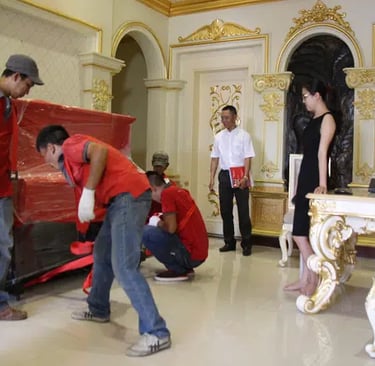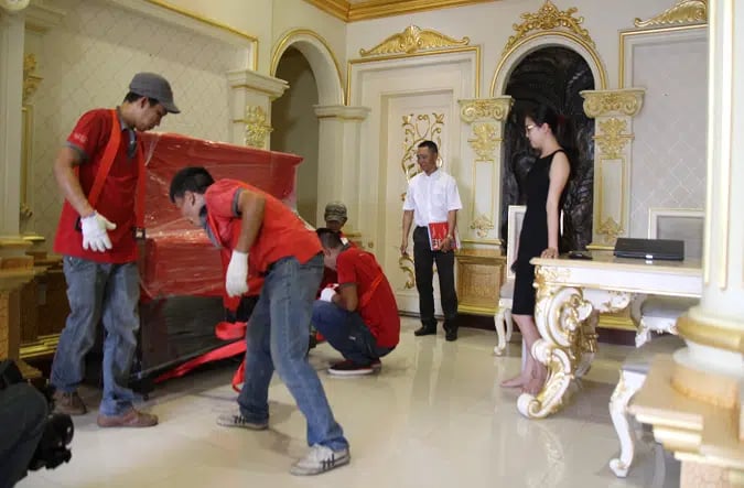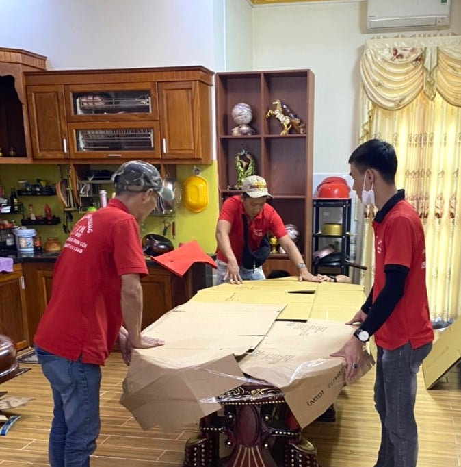 Bàn ghế nội thất trong nhà được bọc bằng thùng carton hoặc dùng mút chống sốc nhằm tránh va chạm, tránh bể vỡ trong quá trình vận chuyển