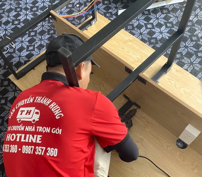 Đội ngũ nhân viên tay nghề cao thực hiện việc tháo lắp bàn, ghế, giường, tủ quần áo, máy lạnh, máy giặt chuyên nghiệp