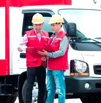 Nhân viên bàn giao và thu tiền khách hàng sau khi hoàn thành dịch vụ vận chuyển