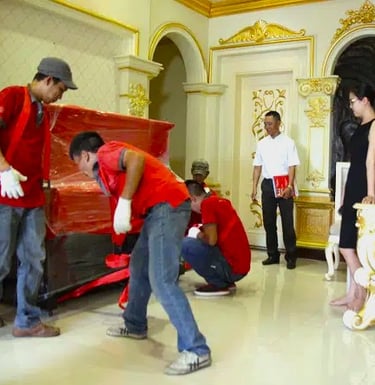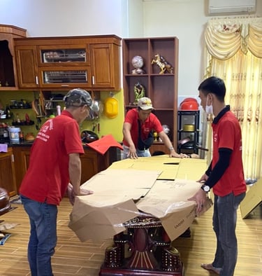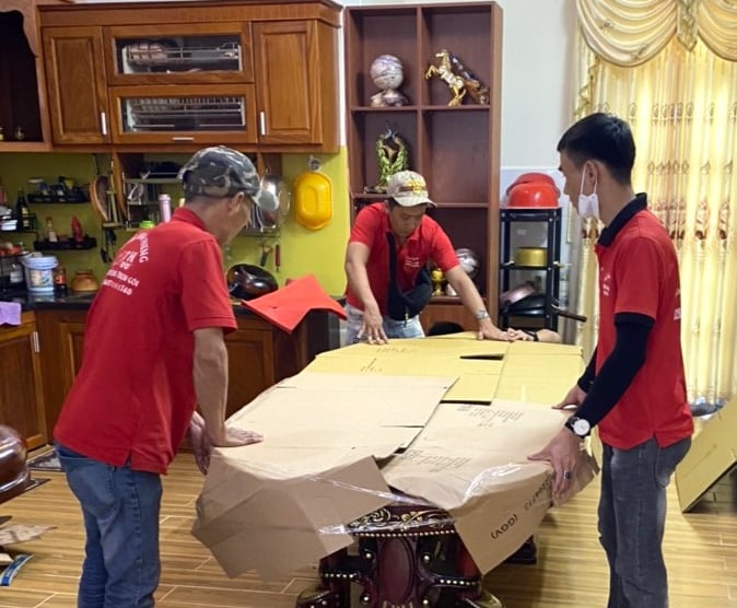 Bàn ghế nội thất trong nhà được bọc bằng thùng carton hoặc dùng mút chống sốc nhằm tránh va chạm, tránh bể vỡ trong quá trình vận chuyển